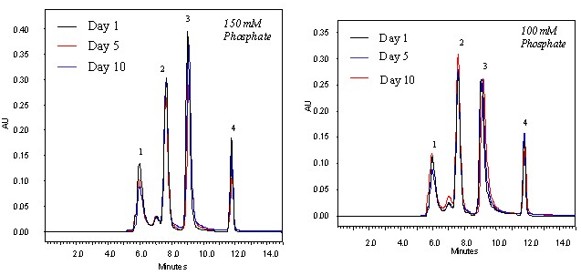 流動相:150mM和100mM磷酸鹽緩沖液, pH 7.0